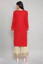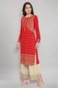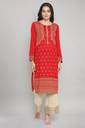 Women Printed Acrylic Blend Straight Kurta (Red)
