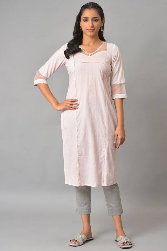 Aurelia Women Striped Straight Kurta (Pink)