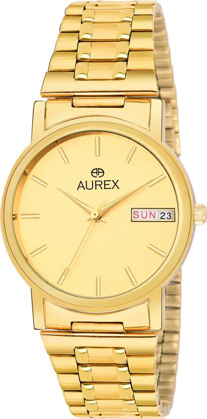 Aurex Golden Dial Day And Date Functioning Analog Watch - For Men