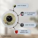 Auromin Analog 30 cm X 30 cm Wall Clock (Gold, Without Glass, Standard)