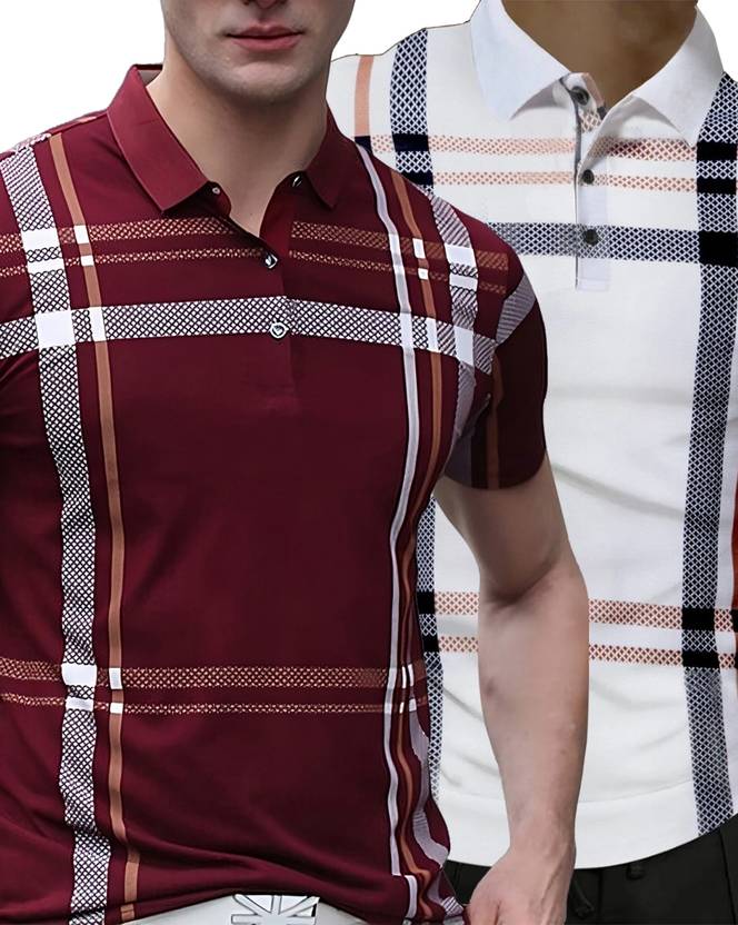 AUSK Checkered Men Polo Neck Multicolor T-Shirt