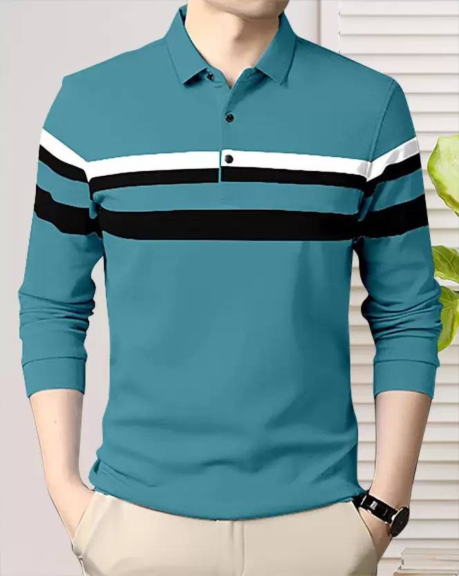 Men Striped Polo Neck Cotton Blend Multicolor T-Shirt