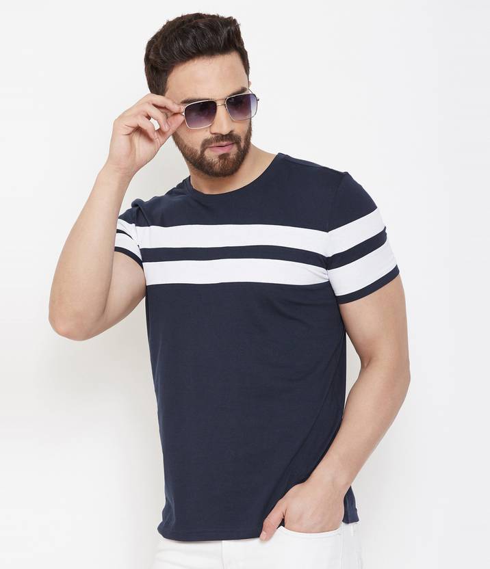 AUSK Colorblock Men Round Neck White, Blue T-Shirt