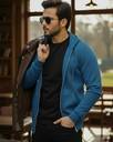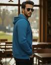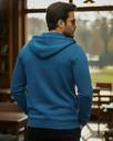 Men's Solid Teal Blue Full Sleeve Hooded Sweatshirt