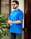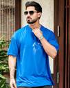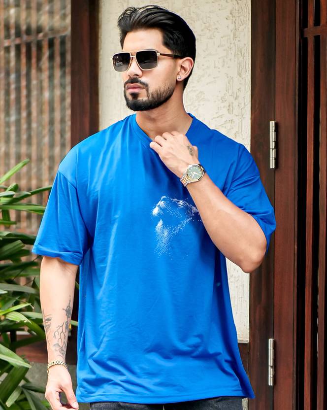 Ausk Printed Blue Half Sleeve Round Neck Oversized Tshirt For Men