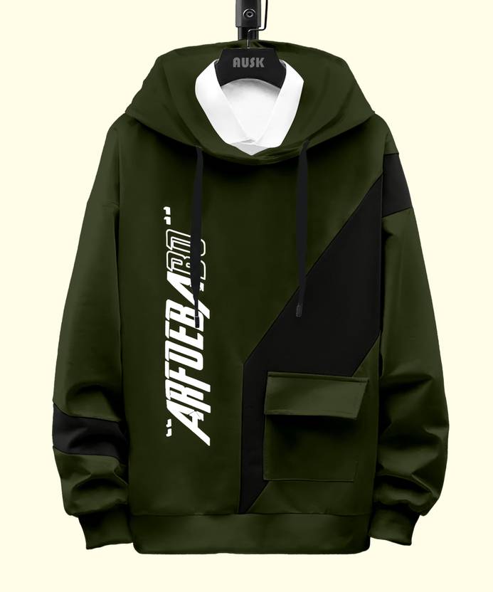 AUSK Printed Men Hooded Neck Dark Green T-Shirt