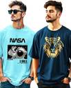 Oversized T-shirt for men printed/graphic print round neck Sky Blue & Teal Blue tshirt