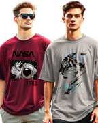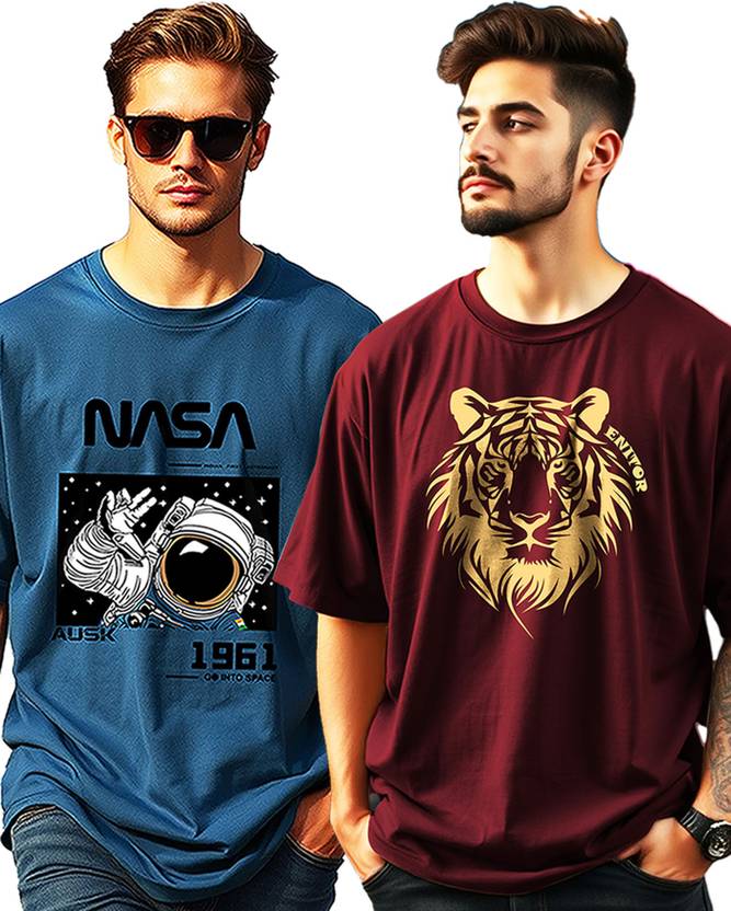 AUSK Printed Men Round Neck Maroon, Dark Blue T-Shirt