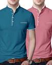 AUSK Solid Men Mandarin Collar Pink, Dark Blue T-Shirt