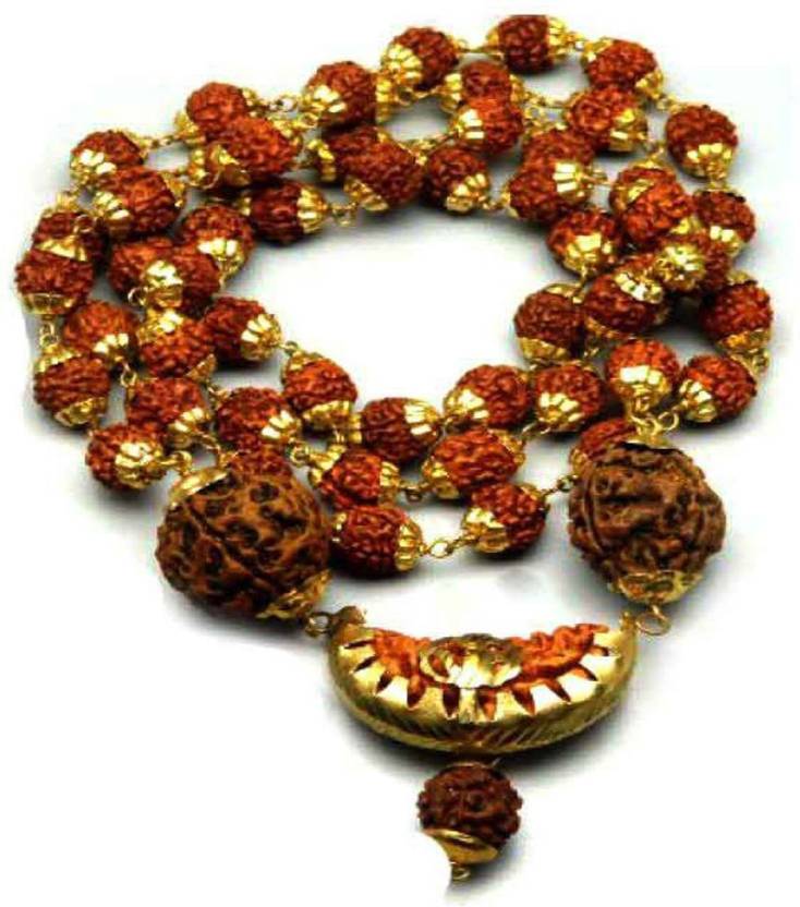 Ek mukhi Rudraksha Mala Beads Gold- Brass Wood Chain