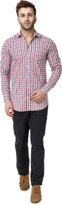 Austin-M Austin-M Men's Checkered Casual Red Shirt Men Slim Fit Solid Casual Shirt