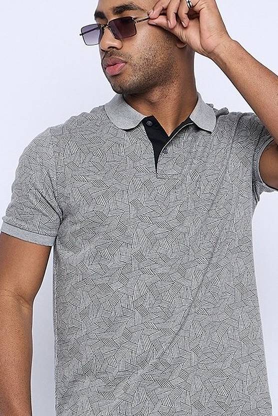 Austin Wood Checkered Men Polo Neck Grey T-Shirt