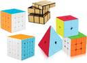 Authfort 2x2, 3x3, 4x4, 5x5, Triangle Pyramid & Gold magic Mirror Speed cube Toy  (6 Pieces)