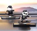 AUTO BLINK Cute Sliding Panda Statue for Car,Office Table,Home Decoration Statue Decorative Showpiece - 8 cm (Plastic, Black, White)