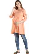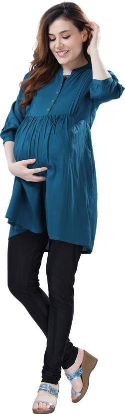 AV2 brings wide range of maternity & nursing tops for pregnant women. This maternity feeding tunic top features round neck with golden buttons, discreet 2 vertical zippers are provided for easy maternity / nursing use. Pair it with your favourite pregnancy pants for casual outing or with comfy nightwear bottoms for all day use, made with soft rayon fabric for feeding mothers.