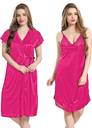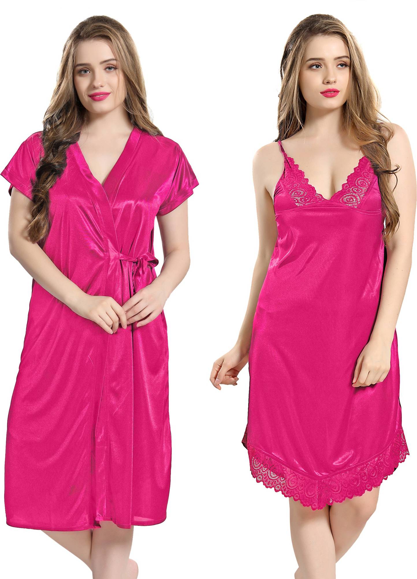 Spice Up The Romance At Night With This Cute Printed Satin Nighty & Robe from Av2. Slip Into This Silky Smooth Satin Chemise Night Dress And Enjoy The Sexy Yet Comfortable Feel Of This Night Slip. Its Adorned With Lace On Cup Edges And bottom hem While Thin Adjustable Straps And Fine Elastic At Back Provides For Snug Fit. Its Perfect As A Gift Set For Your Special Nights Or Even As Bridal Gift Set.