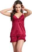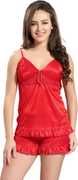 Stay chic all day long in this cute night wear set. Whether its lounging around or dreaming , this Shorts set from AV2 is perfect! Its accentuated with delicate lace details at empire seam and also has and lace insert on shorts, ruffled detail on top and shorts hem add to the playfullness while lace and smooth feel of luxe stain adds to elegance of this piece, Cami has adjusters for length and is elasticated at back for snug fit, Shorts has elasticated waistband.