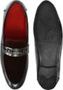 These stylish black patent leather loafers feature a sophisticated brown velvet vamp and a sleek silver-toned buckle detail, adding a touch of elegance to any outfit. The unique grim reaper design on the sole provides a distinctive and edgy touch. Designed for comfort and style, these slip-on shoes are perfect for formal events, parties, or smart casual wear. Pair them with tailored trousers, dark wash jeans, or a suit for a polished look.