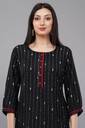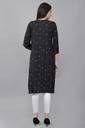 This kurta combines timeless elegance with modern design. The diagonal stripe print exudes a contemporary vibe, while the Mandarin collar and 3/4th sleeves give it a classic touch. Its knee-length cut ensures a versatile look, making it perfect for casual outings, office wear, or small gatherings. The button details enhance the overall aesthetic, while the regular fit keeps it comfortable yet stylish. Dress it up with statement jewelry and heels, or keep it simple with flats for an effortlessly chic ensemble.