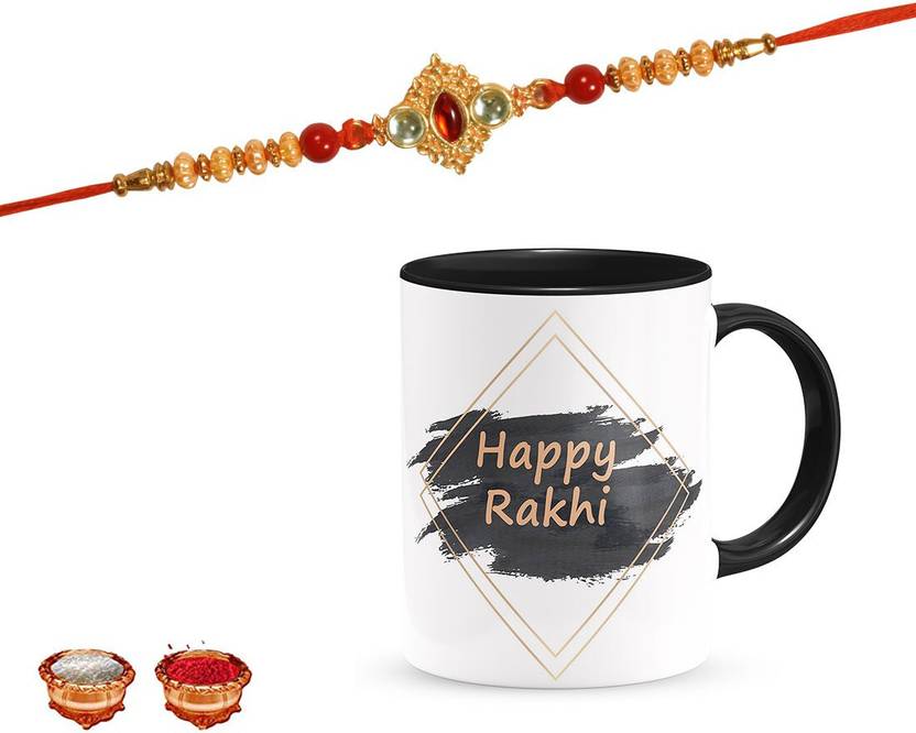 PavitraRakhi Thread LatestJM_BLACKMUG-13-BI Mauli Thread Rakhi, Chawal Roli Pack, Mug Set (rakhi 1, roli chawal -1, Mug-1)