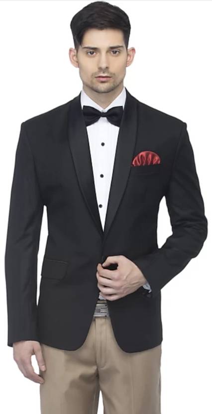 Men Solid Single Breasted Wedding, Party, Casual Blazer (Black)