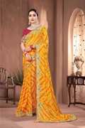 Elevate your ethnic wardrobe with this stunning Printed Bandhani Saree, designed to showcase the rich tradition of Bandhani craftsmanship. The embroidered border adds a touch of sophistication, with fine threadwork that complements the vibrant hues of the saree. Whether you’re attending a festive celebration, a wedding, or a special occasion, this saree is sure to make you stand out.
