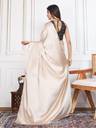Satin Solid Cream Color Saree With Blouse