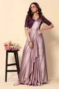 Satin Solid Pink Color Saree With Blouse