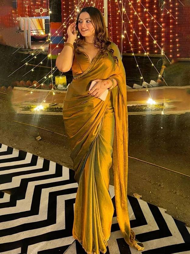 Tissue Silk Solid Gold Color Saree with Blouse