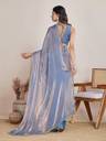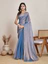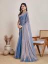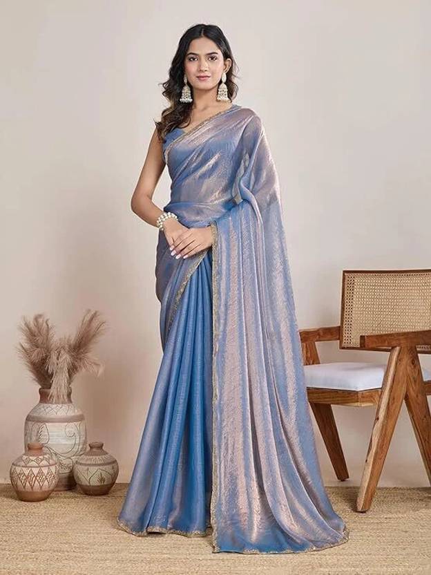 This saree is crafted from luxurious tissue fabric, known for its sheer, lightweight texture and rich metallic sheen. Woven using silk threads blended with golden metallic yarns, the fabric exudes a regal charm with a subtle shimmer that catches the light beautifully. Its crisp and slightly stiff drape holds structure well, creating an elegant and poised silhouette. The golden-bronze hue with an undertone of green adds depth and sophistication, making it a perfect choice for festive occasions, weddings, or evening events. This type of fabric not only enhances the wearer's grace but also brings a timeless, opulent appeal to the overall look.