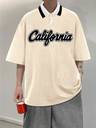AVEJO Embroidered Men Polo Neck Beige T-Shirt