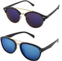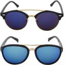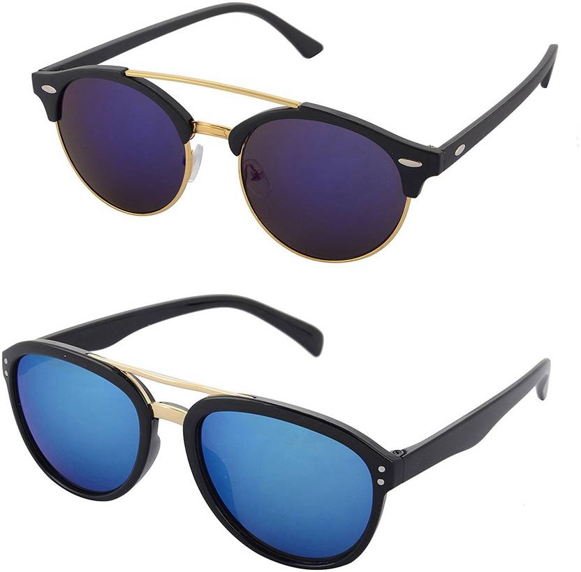 Sunglasses Combo- Mirrored Aviators Sunglasses & Clubmaster Round Sunglasses, Reflective Mirrored Blue Aviator sunglasses & Mirrored Blue Round Clubmasters, Size- Medium; Lightwieght, Ideal Sunglasses for Men & Women