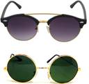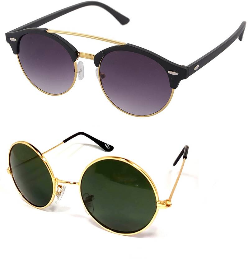 Sunglasses Combo-Golden Round Sunglasses & Clubmaster Round Sunglasses, Green Glasses Round sunglasses & Black Round Clubmasters, Size- Medium; Lightwieght, Ideal Sunglasses for Men & Women