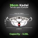 AVIAS AVI3 Triply Kadai with SS Lid Kadhai 26 cm diameter with Lid 3.25 L capacity (Stainless Steel, Induction Bottom)