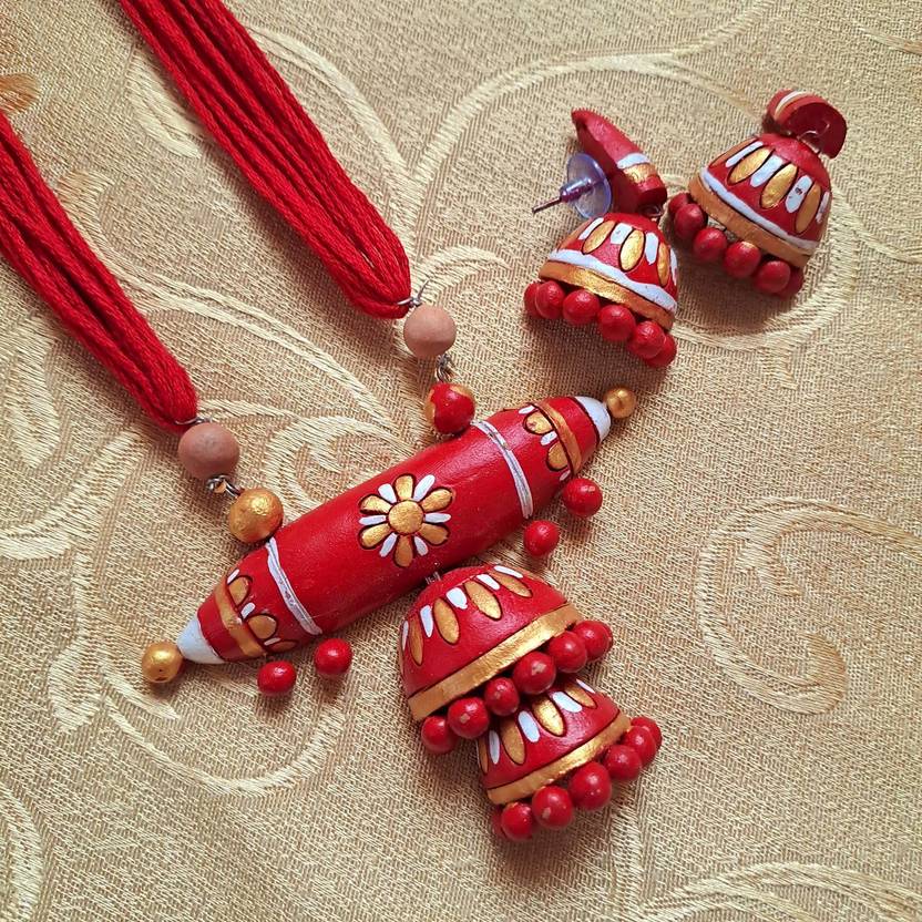 AVIGHNA Terracotta, Dori Red, Gold, White Jewellery Set (Pack of 1)