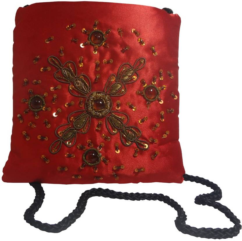 Avinash Handicrafts Red Sling Bag Sling Bag 16.5x16.5 cm Red in Zari work