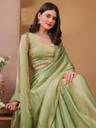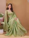 Package includes: 1 saree with 1 blouse piece. Saree length: 5.5 m, blouse piece length: 0.80 m (unstitched). Material: Pure Nazneen chiffon saree with a Jacquard blouse piece. Perfect for casual outings, office wear, social gatherings, festivals, weddings, and other events. An ideal gift for your loved ones.