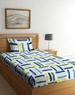 AVINYA Cotton Single Fitted (Elastic) 210 TC Printed Bedsheet (Pack of 1, Multi Line)