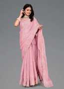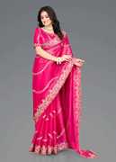 Adorned with intricate embroidery and delicate floral motifs, this saree reflects refined craftsmanship and traditional charm. The soft, lustrous fabric ensures a graceful drape, making it perfect for festive celebrations, weddings, and cultural occasions. It comes with a beautifully embroidered blouse to complete your look with sophistication. Please note: Actual product color and design may slightly vary due to photographic lighting and screen resolution.'
