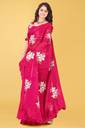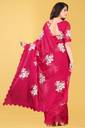 The saree drapes beautifully, accentuating your silhouette, while the vibrant color palette enhances its visual appeal. The matching blouse is adorned with complementary embroidery, completing the look with finesse. Whether for a wedding, festive occasion, or a special celebration, this embroidered saree is sure to turn heads and leave a lasting impression.