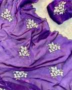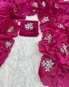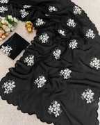 Elevate your elegance with this exquisite embroidered saree, a perfect blend of traditional artistry and contemporary style. Crafted from luxurious fabric, this saree features intricate embroidery that showcases skilled craftsmanship. The delicate patterns are embellished with shimmering sequins and thread work, adding a touch of opulence to the ensemble.