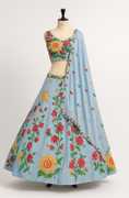 Lehenga choli detail Lehenga Choli Lehenga Fabric :- Georgette Lehenga choli Choli Fabric:- Georgette Lehenga choli Dupatta Fabric:- Georgette Lehenga Choli Inner:- CRAP Lehenga choli WORK: EMBROIDERY SEQUENCE DESIGN WORK Lehenga Choli Stitching Type:- UNSTICH FLAIR: 3.50 MTR hight : 42 Waist:- 42