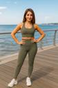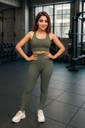 Elevate your fitness style with this Seamless Olive Green Activewear Set, designed to offer you both performance and elegance. The set includes a high-support sports bra and full-length high-waist leggings, crafted from premium stretchable fabric for a perfect body-hugging fit. Whether you’re doing yoga, cardio, or outdoor workouts, this outfit moves with you effortlessly while keeping you confident and comfortable.The ribbed texture adds a modern, sporty touch, while the moisture-wicking fabric keeps sweat away for a cool, dry experience. The broad waistband of the leggings provides tummy control and enhances your silhouette, while the racerback sports bra offers optimal support during high-movement activities.Perfect for gym sessions, running, yoga, or casual athleisure looks — this outfit ensures you stay fashion-forward and functional all day long.