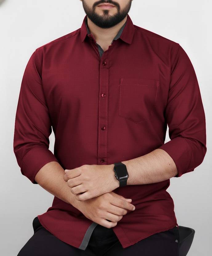 NARGHEISH NICE Men Solid Formal Maroon Shirt
