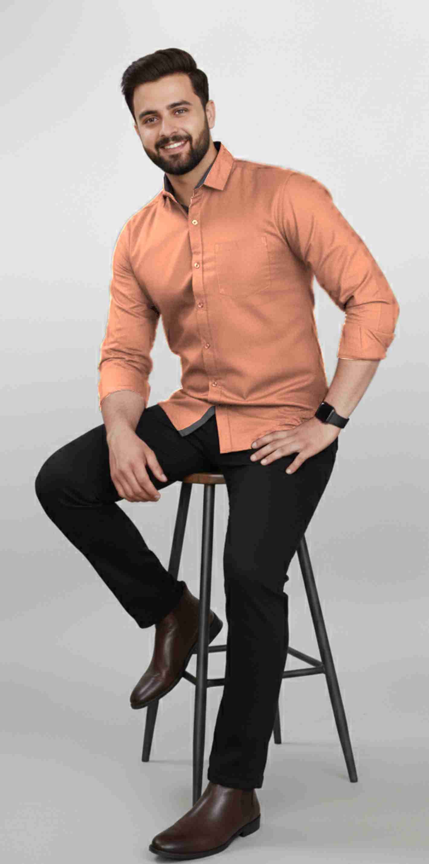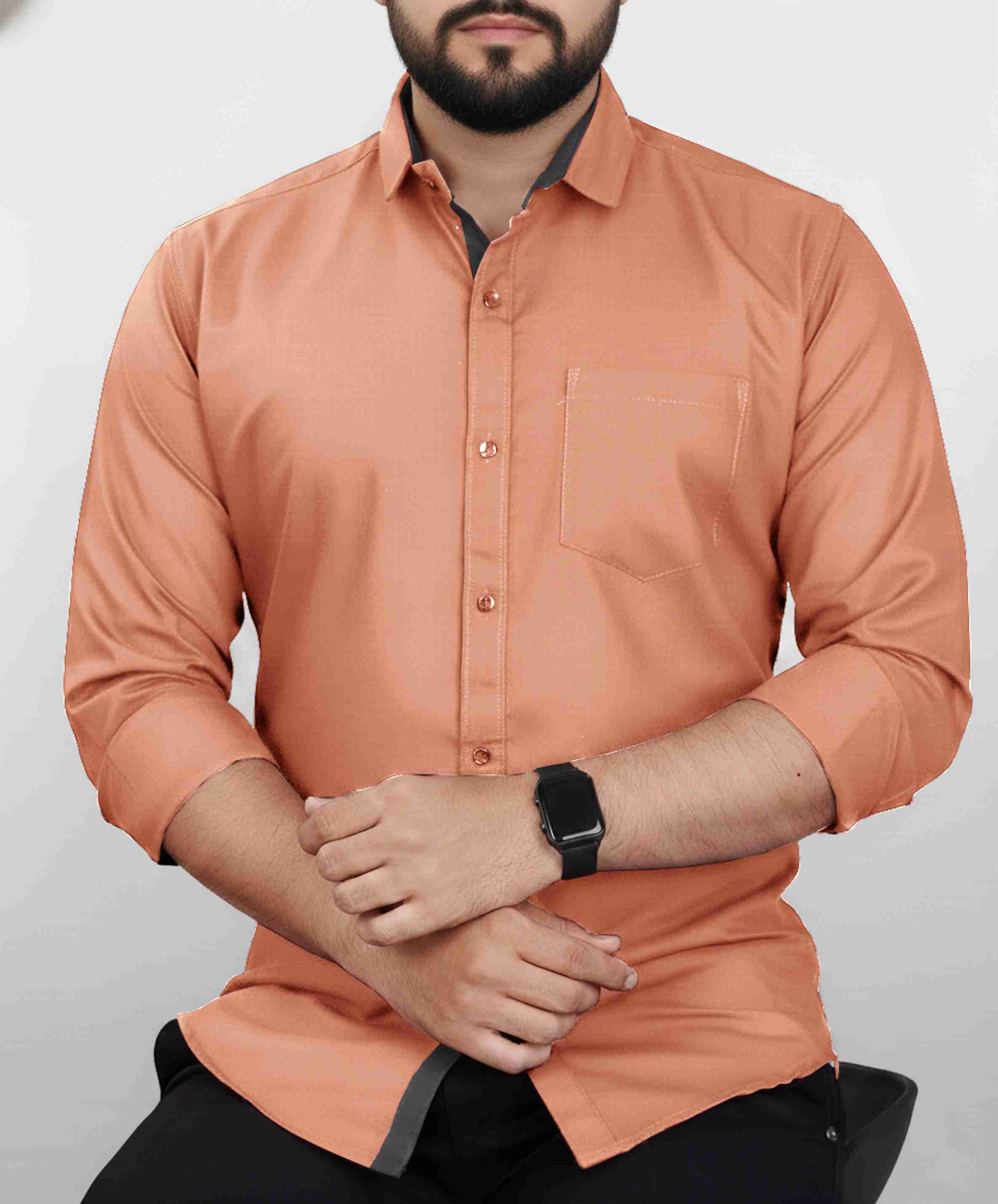 Men Regular Fit Solid Spread Collar Formal Shirt