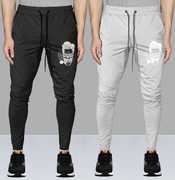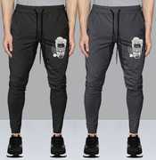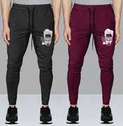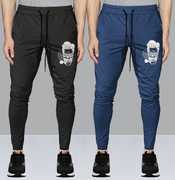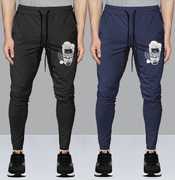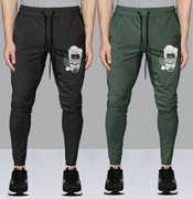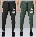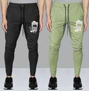 Pack of 2 Men Graphic Print Black, Dark Green Track Pants