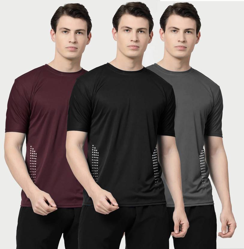 AVOLT Men's Polyester T-Shirts (Combo of 3) – Stylish and comfortable, these solid-colored round-neck tees feature a half-sleeve design, perfect for casual wear. Made from high-quality polyester for durability and breathability. Ideal for everyday use!