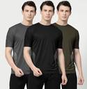 AVOLT Pack of 3 Men Solid Round Neck Polyester Multicolor T-Shirt