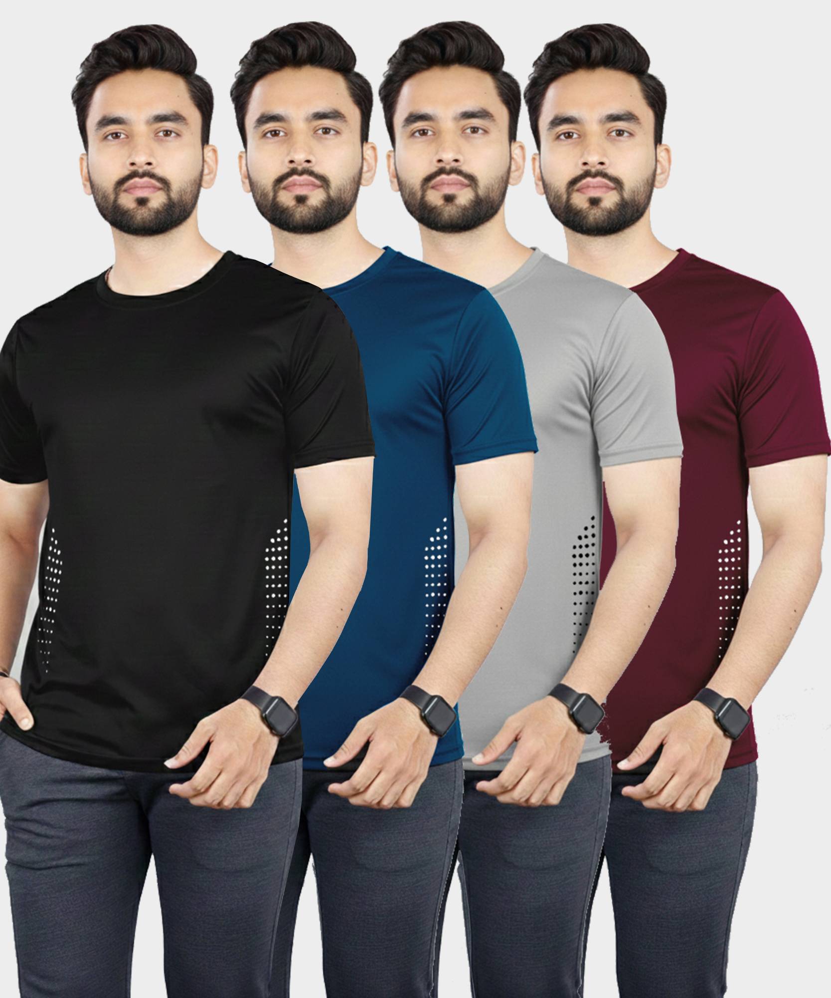 AVOLT Men's Polyester T-Shirts (Combo of 3) – Stylish and comfortable, these solid-colored round-neck tees feature a half-sleeve design, perfect for casual wear. Made from high-quality polyester for durability and breathability. Ideal for everyday use!