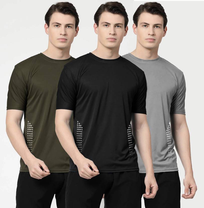 AVOLT Men's Polyester T-Shirts (Combo of 3) – Stylish and comfortable, these solid-colored round-neck tees feature a half-sleeve design, perfect for casual wear. Made from high-quality polyester for durability and breathability. Ideal for everyday use!